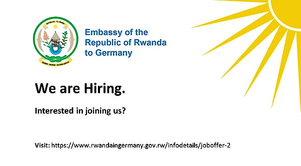 To apply for this vacancy, kindly send your cover letter and Curriculum Vitae (CV) exclusively via e-mail to ambaberlin@minaffet.gov.rw
