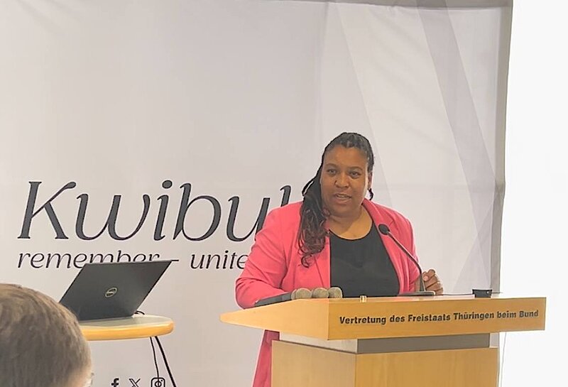 Minister of Migration, Justice and Consumer Protection of the Free State of Thuringia, Hon. Ms. Doreen Denstädt opened the floor to the commemoration ceremony with her remarks, highlighting "the great responsibility to ensure that such [Genocide] atrocities never happen again, but also the independent responsibility and duty of all, which is why the commitment to justice, tolerance and reconciliation is all the more important."