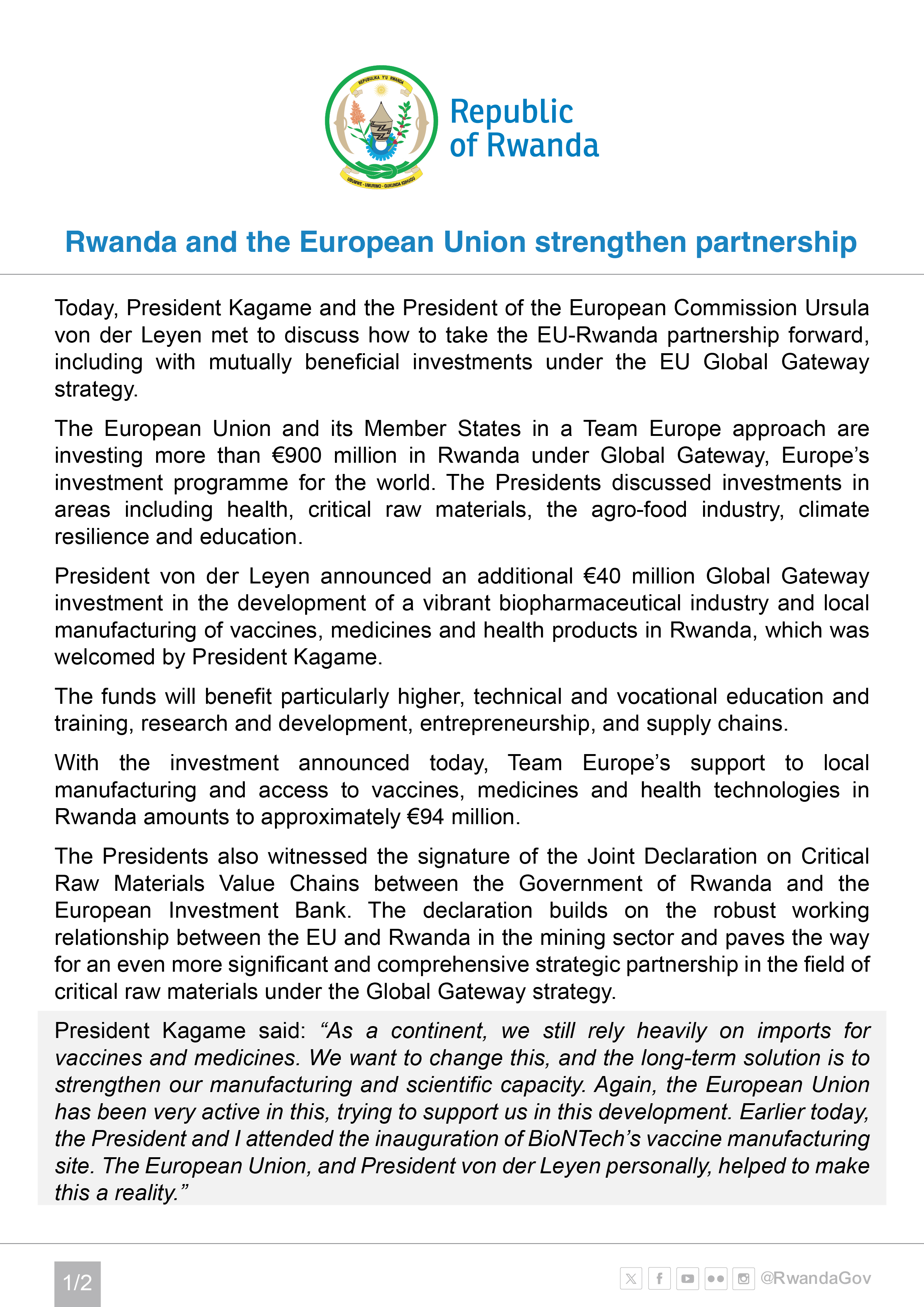 Rwanda and the European Union strengthen partnership