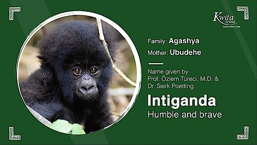 Among the namers were Prof. Dr Özlem Türeci & Dr Sierk Poetting from BioNTech Group at this year’s Kwita Izina. BioNTech is currently establishing a sustainable and state-of-the-art mRNA Vaccine Manufacturing Facility in Rwanda. The duo named a baby gorilla,Intiganda. The name we give captures the essence of someone who has the courage to face challenges and pursue ambitious goals while maintaining a sense of humility and selflessness.”